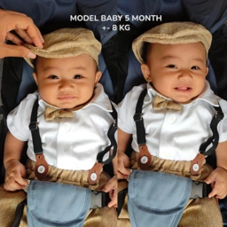 Haleys.co Hampers Premium | Tuxedo Package | Tuxedo Formal Baby Boy Brown White + Piyama Katun 100% Adem Ringan 6-12 Bulan | 8 in 1