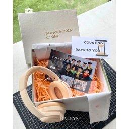 Semuanya custom handmade special dari HALEYS Premium Hampers, yang kamu akan dapatkan sesuai di gambar ya :) akan kami fotokan sebelum kirim. Kamu bisa request nama teman kamu di box nya dan kartu ucapan yang sangat menyentuh. Yang akan kamu dapatkan :
