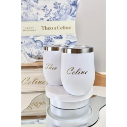 2. 2 pcs Stainless Mug anti tumpah custom nama mempelai