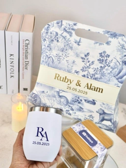 Untuk kamu yang mau kadoin ke teman kamu yang mau nikah atau buat kamu yang cari souvenir wedding intimate dengan kesan yang mewah dan estetik, tentunya juga bermanfaat untuk tamu :)